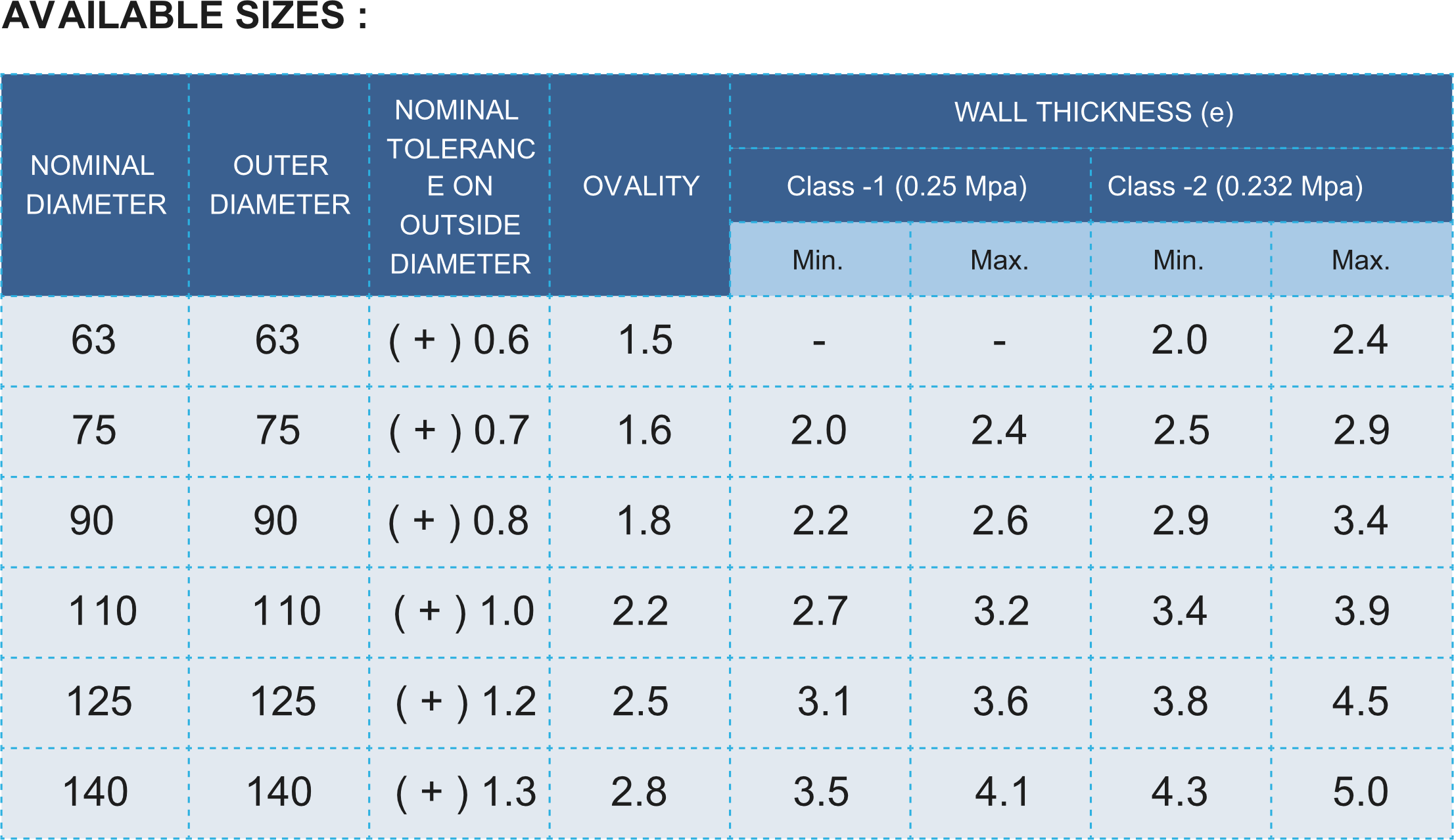 PN 2.5 and PN 3.2 (0.25 MPa and 0.32 MPa).